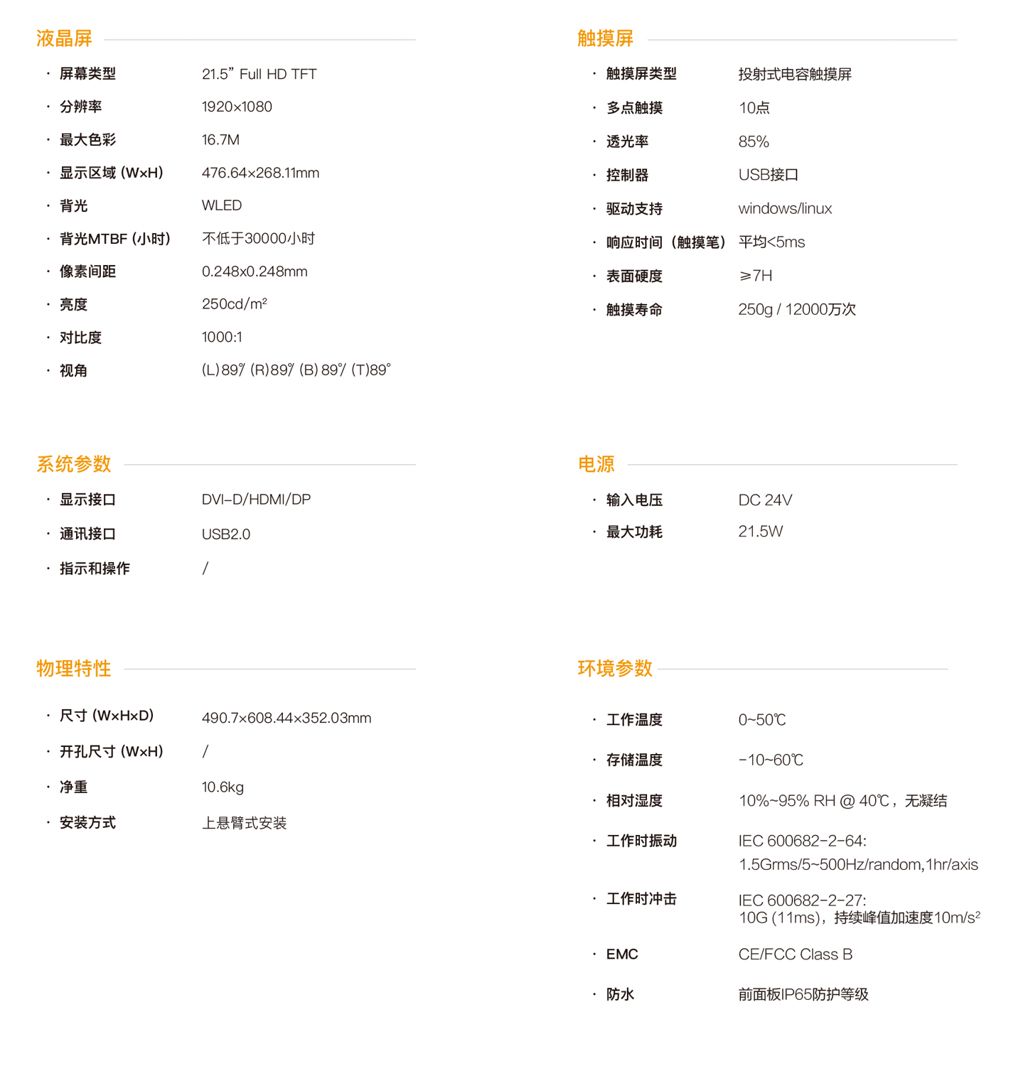 21.5寸上懸臂式觸控面板